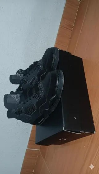 Zapatillas Jordan 4 estilo Black Cat. Incluyen un llavero. - Diseño completamente negro. - Detalle de malla en los laterales. - Logo de Jordan en la lengüeta y el talón. Y talla 41