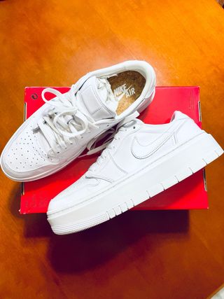 WMNS NIKE AIR JORDAN 1 ELEVATE LOW WHITE/WHITE-WHITE/ Piel UNISEX Talla 44. En perfecto estado. Se han usado un par de veces nada más. Sólo tengo una parte de la caja (me deshago de las tapas para mejor almacenamiento).