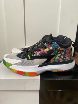 Zapatillas deportivas Jordan Zion con un diseño vibrante y moderno. - Combinación de colores llamativa. - Detalles gráficos únicos en la parte superior. - Suela con segmentos de colores.