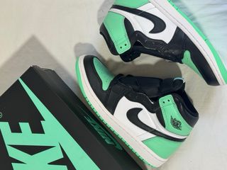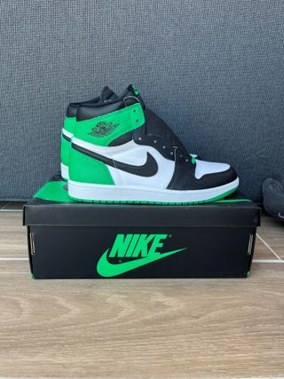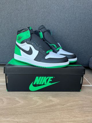 Zapatillas Jordan 1 con un llamativo diseño en verde y blanco. Precio Orginal 190€ Factura disponible - Combinación de cuero blanco y negro. - Detalles en verde vibrante. - Diseño de caña alta.