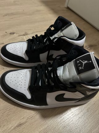 Zapatillas Air Jordan 1 Mid en una combinación clásica de negro y blanco. Usado apenas 2x - Diseño de media caña. - Detalles perforados en la puntera. - Logotipo de Jordan en la lengüeta.