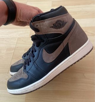 Zapatillas altas Nike Air Jordan 1. - Diseño de caña alta. - Combinación de colores negro y marrón. - Cordones negros. Como nuevos