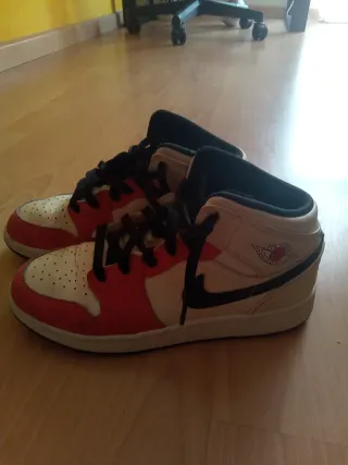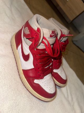 Zapatillas de caña alta con un diseño clásico en rojo y blanco. - Detalle del logo de Jordan en el lateral. - Swoosh de Nike en contraste. - Cordones rojos. - Puntera perforada. Como puede ver en una de las fotos esta un poco en mal estado