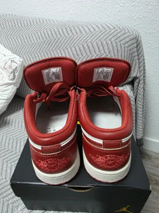 Zapatillas Jordan 1 Low en tonos rojos y blancos. - Diseño icónico de Jordan. - Detalles en cuero. -100% Originales
