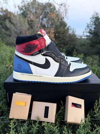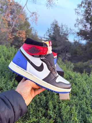 Zapatillas Jordan 1 Union x Fragment en Varsity Red y Royal Blue Son talla EU 40,5 / US 7,5 Nuevas a estrenar conseguidas en Footdistric con factura de compra.
