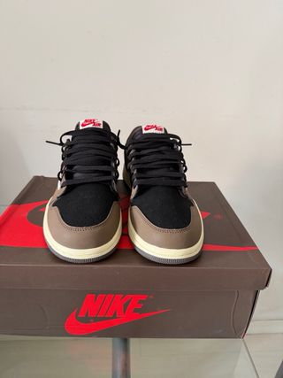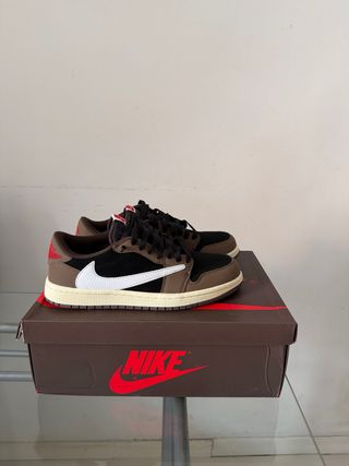 Zapatillas Jordan 1 Low edición especial Travis Scott. - Diseño icónico con detalles en marrón y blanco. - Logotipo Swoosh distintivo. -talla 41 -precio negociable