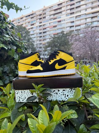 Jordan 1 Mid Amarillo Negro