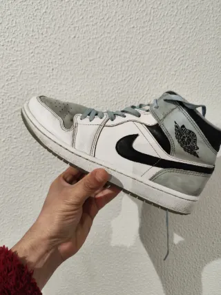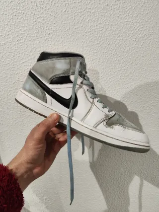 Zapatillas deportivas de la marca Jordan. - Diseño de corte medio. - Combinación de colores gris y blanco. - Cordones negros. - Suela blanca.