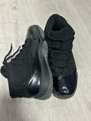 Zapatillas Jordan 11 de color negro. - Diseño de caña alta. - Acabado brillante en la puntera y laterales. - Cordones negros.