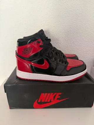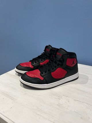 Zapatillas Jordan rojas y negras, compradas en una tienda en persona, por lo que son reales y están conservadas y casi ni utilizadas