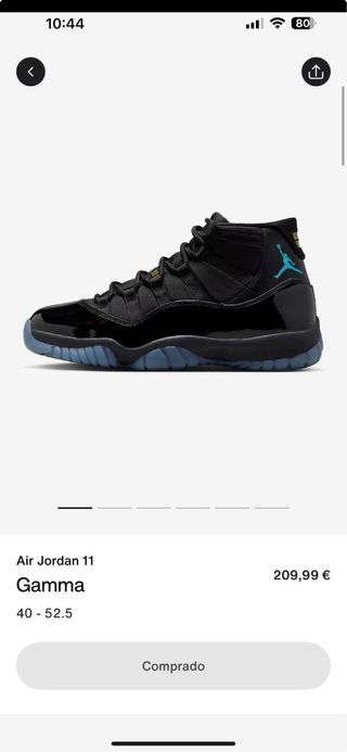 Zapatillas Air Jordan 11 Gamma Blue aún no se a lanzado a la venta al público (salen a finales de diciembre pero no hay fecha exacta) talla 43 original con recibo etc tercera foto aparecen las últimas ventas de StockX para que veáis cómo van subiendo etc (al precio de venta ese se le añaden envío ósea que 50€ más +-)