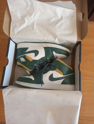 Air jordan mid 1 (GS) noble green/pollen-white. Poco uso. Plantillas nuevas. En perfectas condiciones. Originales. Con caja. Talla 40 EU.