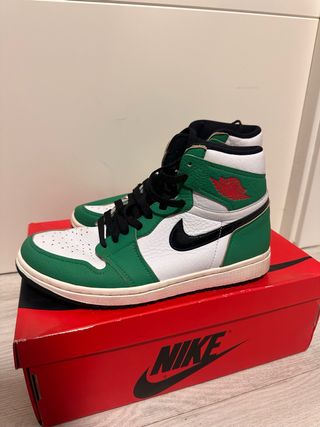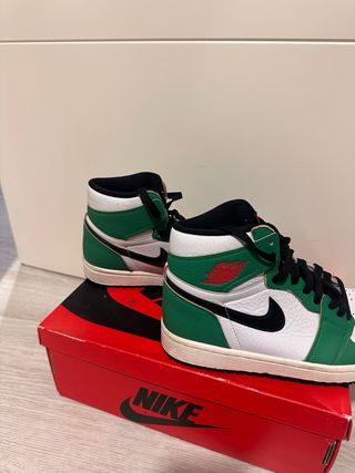 Zapatillas Air Jordan 1 High en color verde y blanco. - Diseño icónico de Jordan. - Detalles en verde y blanco. - Exclusivas e imposibles de conseguir. - Precio original 580