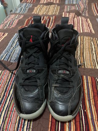 Vendo un par de zapatillas Jordan. Son de color negro y rojo, y están en buen estado. - Son de ante. - Ideales para el uso diario.
