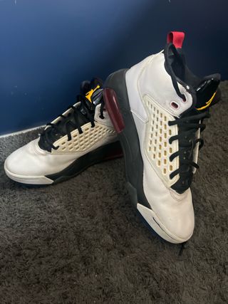 Zapatillas deportivas Jordan con un diseño moderno y llamativo. - Combinación de blanco y negro. - Detalle del logo Jordan en dorado. - Solo se usaron 1 vez