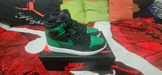 Zapatillas Jordan 1 Retro en color Pine Green. Incluyen cordones adicionales. Esta con muy poco uso - Diseño icónico de Jordan 1. - Combinación de negro y verde.