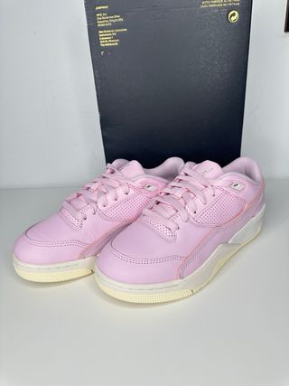 Zapatillas Jordan Flight Court en color rosa y blanco. - Talla 38. - Diseño deportivo y moderno. - Caja original Jordan sin tapa