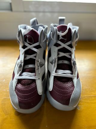 Zapatillas de baloncesto Jordan Jumpman Two Trey (solo han tenido un uso) - Diseño de caña alta. - Combinación preciosa de grises, blanco y burdeo. - Detalles del logo Jumpman. - Suela antideslizante Abierta a negociar