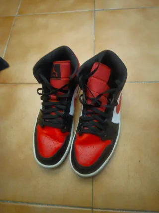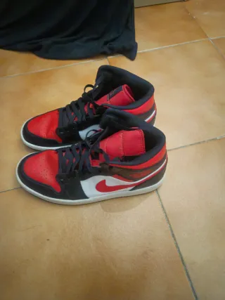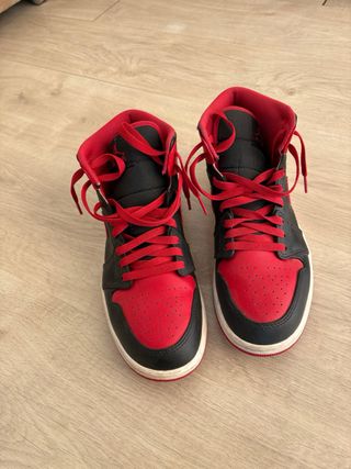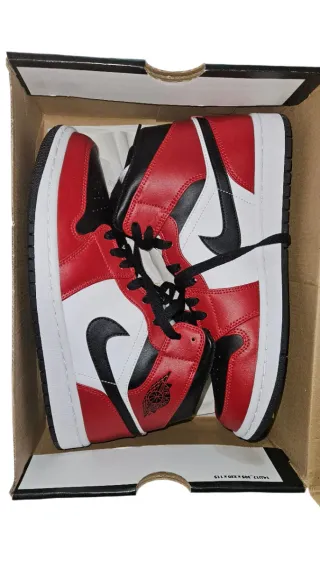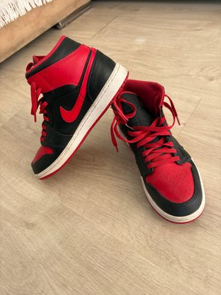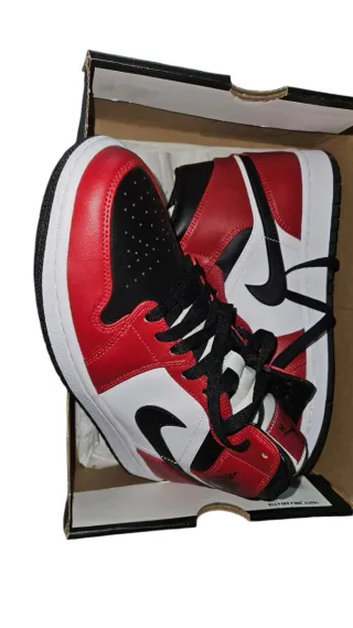 Zapatillas Nike Air Jordan 1 Mid Bred Toe originales. Edicion para coleccionistas. .Con Lengueta negra,modelo mas codiciado que la de lengueta blanca o roja. .Caja Original (observar como son identicos numero de referencia caja y etiqueta lengueta). .Talla 44 .Perfecto estado, apenas usadas. - Diseño icónico. - Combinación de colores rojo y blanco.