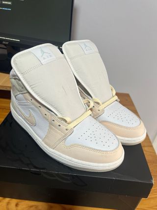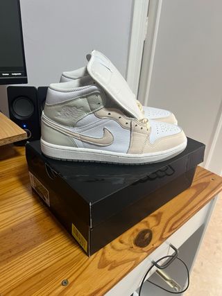 Vendo Air Jordan 1 Mid SE originales en color White / Guava Ice / Sea Glass.Están completamente nuevas, sin usar, en perfecto estado y con su caja original. Las compré pero no son mi talla, por eso las vendo. 🔹 Talla: 42.5 EU (27 cm)🔹 Estado: Nuevas, nunca usadas🔹 Modelo: Air Jordan 1 Mid SE🔹 Color: Blanco / beige / verde suave🔹 Con caja original En tienda suelen rondar los 100-90€.Las dejo en 65€ negociables para venderlas rápido.