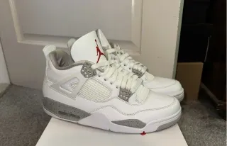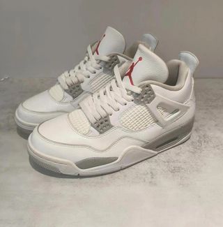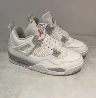 Zapatillas Jordan 4 Retro White Oreo en talla 42. Un clásico reimaginado con un diseño limpio y detalles icónicos. - Color principal blanco con salpicaduras grises. - Diseño inspirado en el modelo original. - Cierre de cordones para un ajuste seguro.