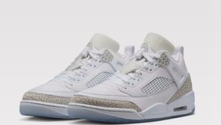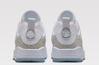Zapatillas de la marca Jordan en tonos blanco y beige. - Diseño con detalles de elefante en la suela. - Malla transpirable en los laterales. - Cierre con cordones.