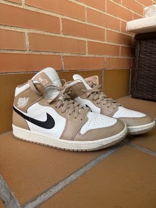 Zapatillas Jordan 1 Mid en tonos beige y blanco. Un diseño clásico y versátil. - Detalle de logo Jordan en el lateral. - Cordones a juego con el diseño. - Perfecto estado