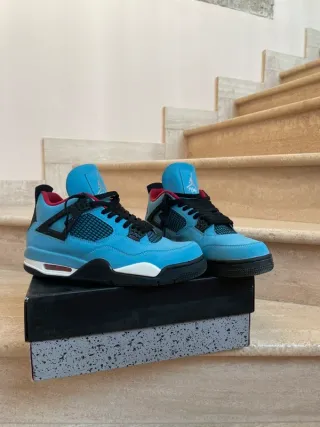 Zapatillas Jordan 4 edición especial Cactus Jack. - Color azul cielo. - Detalles en rojo y negro. - Talla 42.