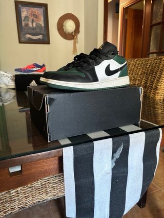 Zapatillas Jordan 4 RM color “pine green” talla 45. Recomiendo subir media talla de la habitual. Están en perfecto estado, sin ningún desperfecto ya que apenas se han usado dos veces. Se venden en su caja original