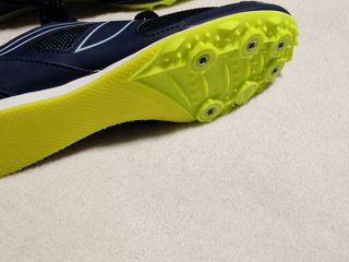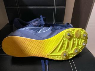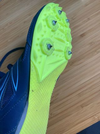 Zapatillas de clavos deportivas con un diseño llamativo. - Parte superior de malla transpirable. - Detalle de logo en la lengüeta. - Cierre con cordones negros. - Suela de clavos. solo usada en pista.