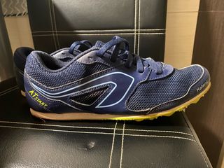 Zapatillas de atletismo Kalenji con clavos incluidos,en color azul con suela amarilla. Tiene 2 usos, están nuevas.Diseñadas para la competición. - Cierre con cordones. - Suela con clavos para máximo agarre.