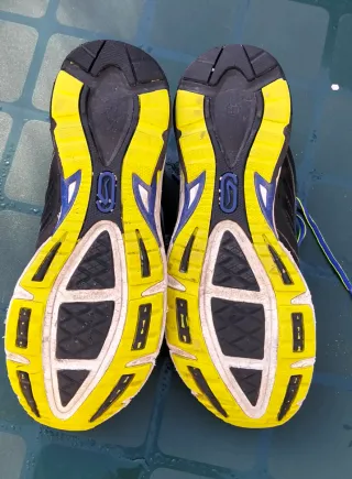 Zapatillas de cross con clavos, ideales para carreras.clavos de metálico y plástico .Talla 41. Sin usar. Incluye llave - Color negro y amarillo. - Incluye juego de clavos y llave para cambiarlos.