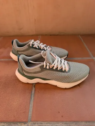 Zapatillas deportivas de la marca Kalenji en talla 36. Combinan tonos grises y blancos para un look moderno.Nuevas apenas un uso . Etiqueta 🏷 cortada . - Diseño deportivo. - Cierre con cordones.