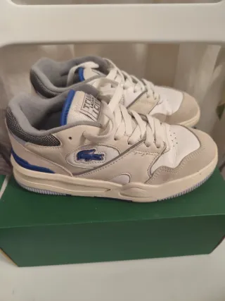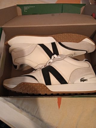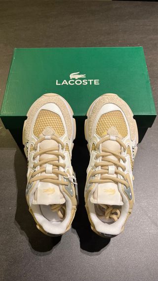 Zapatillas deportivas de la marca Lacoste en tonos beige y blanco. Un diseño moderno y cómodo. - Detalle de logo en la lengüeta. - Combinación de materiales en el exterior. - Cierre con cordones. Recoger en persona junto estación Sagrera L1 L5 o en otro lugar previo acuerdo.