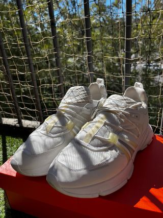Zapatillas de estilo casual con un diseño moderno totalmente NUEVAS, en su caja con etiqueta. ¡¡¡ SIN NINGUN USO !!! - Detalle de logo en el lateral. - Combinación de blanco y azul marino. Valen 100 euros en tienda, las dejo más baratas por venderlas pronto.