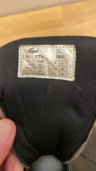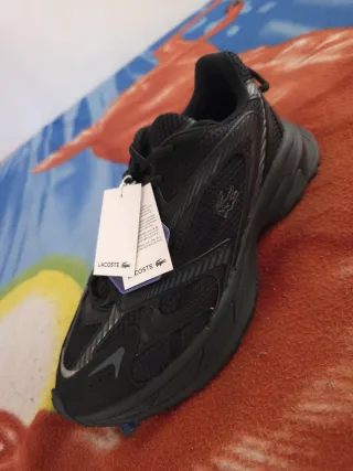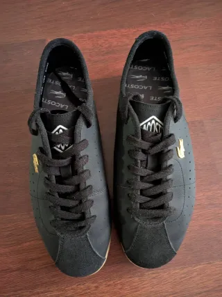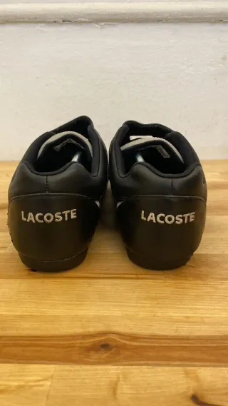 Zapatillas de la marca Lacoste en color negro y talla 43. - Diseño elegante y deportivo. - Detalle del logo de Lacoste en la parte trasera.