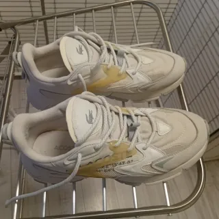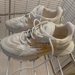 Zapatillas Lacoste en color blanco, combinan estilo deportivo con un toque elegante para un look casual y versátil. Muy poco uso, en excelente estado. Talla: 45. No incluyen caja original.