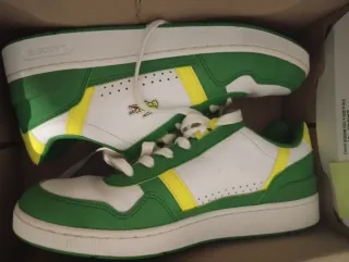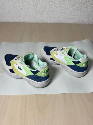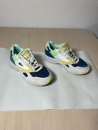 Zapatillas deportivas Lacoste sin estrenar. - Diseño moderno en tonos verdes y amarillos. - Talla 39.