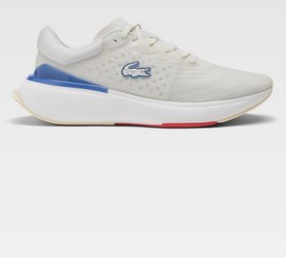 Zapatillas deportivas de hombre de la marca Lacoste. - Diseño moderno en blanco con detalles azules. - Suela blanca con detalles en rojo y beige.