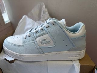 Zapatillas de la marca Lacoste en tonos azul y blanco están nuevas con caja para estrenar solo las vendo porque me quedan grandes pero están nuevas