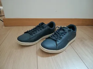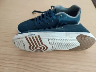 Zapatillas de la marca Lacoste originales en color azul, talla 39. Muy poco uso y conserva la caja. - Diseño clásico y versátil. - Cierre con cordones. - Detalle del logo de Lacoste.