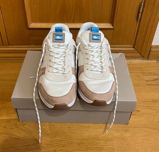 Zapatillas deportivas Lacoste en tonos beige y blanco. Perfectas para un estilo casual. - Diseño moderno y cómodo. - Logo de cocodrilo distintivo.