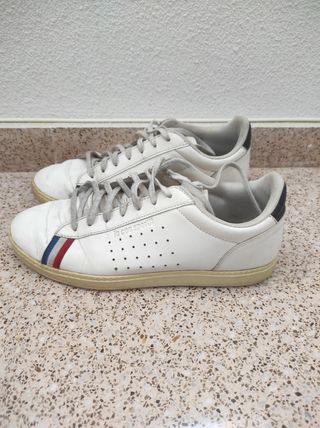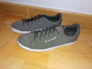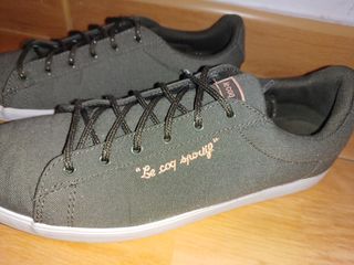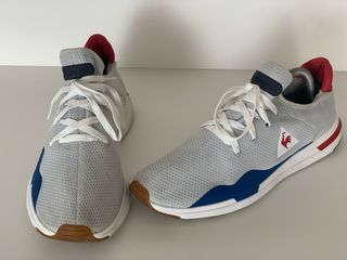 Vendo un par de zapatillas Le Coq Sportif. Son de color gris y azul, con detalles en rojo y blanco. Están en muy buen estado. - Diseño moderno y ligero. - Suela cómoda y resistente. - Ideales para el uso diario.