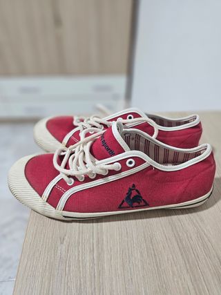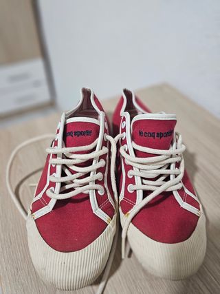 Zapatillas Le Coq Sportif de color rojo, talla 41. Son de lona y tienen un diseño clásico. Están en buen estado. - Ideales para el uso diario. - Cómodas y ligeras. - Suela de goma.