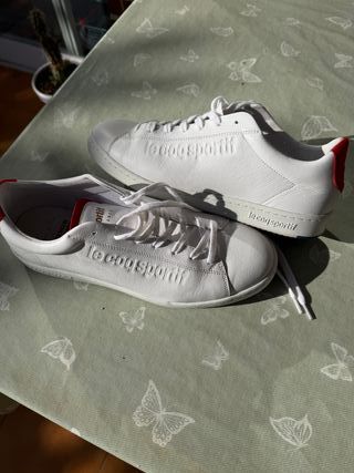Zapatillas Le Coq Sportif fabricadas en Francia. - Talla EUR 40. - Talla UK 6. - Talla US 7,5. - Talla JP 26. - Número de artículo: 1821239. - Fecha de fabricación: 14/07/2018.