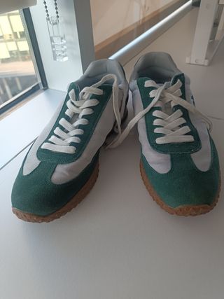 Zapatillas deportivas (bambas) verdes con detalles rosa palo, con muy poco uso, como nuevas