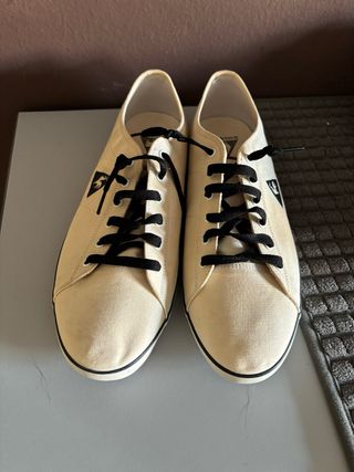 Zapatillas de lona en color beige con cordones negros.nunca usadas numero 46 - Detalle de logo en el lateral. - Suela de goma.