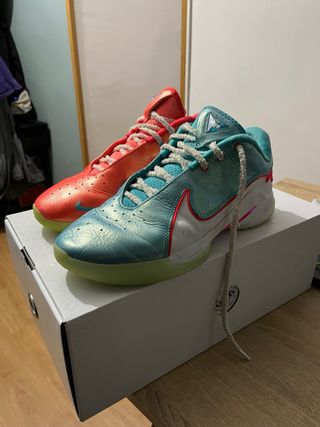 Zapatillas deportivas Nike LeBron XXII edición especial XMAS. - Diseño llamativo con detalles en naranja, turquesa y blanco. - Talla 46. -compradas hace tan solo 3 meses precio original 189 €