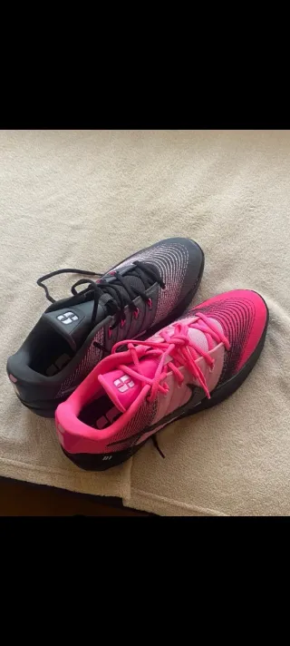 Vendo zapatillas Nike LeBron Witness 6 completamente nueva. La talla es un 41 EUR (UK 7 / BR 39,5 / CM 26). La compré para un regalo y me confundí de pie y se me pasó el ticket. Colores: Clear Emerald / Wild Berry /Blanco / Hyper Pink. Son originales, compradas en tienda Nike (se adjunta foto del ticket). Modelo: CZ4052-300. Me costaron 80€. En Amazon cuestan 120€. Incluye su caja.