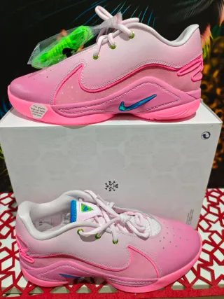 Zapatillas deportivas Nike LeBron 22 SN GS en llamativos tonos rosas y multicolor. Nuevas sin estrenar Zapatillas baloncesto niña Originales 💯 Caja original sin tapa - Diseño deportivo y moderno. - Detalles en color rosa y toques multicolor. - Cordones blancos y ojales verdes.